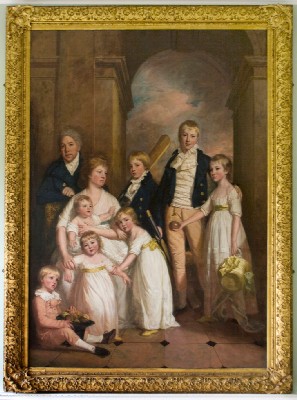 The younger Thomas (1764-1804) married Marianne Schimmelpenninck in 1786, daughter of Lambert Schimmelpenninck, a Dutch shipping merchant in Bristol, and although both died young in 1804/5, they nevertheless had ten children in thirteen years. A fine portrait of Thomas and Marianne with seven of their children, the two eldest boys holding cricket bats, by the portraitist Thomas Beach, c.1797, is in the collection of Bristol University and on display in the house (see final image). A memorial to them, with the Tyndall arms and crest as on the service, can be found in Christ Church, Bristol.