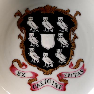The Broad estate on the East Sussex Weald was purchased in 1630 by Edmund Calverley, descendant of a Yorkshire family, to which were later added a number of manors in Sussex and Surrey. This tea service was almost certainly commissioned by Edmund’s grandson, Thomas Calverley, who was born about 1698. He married first Mary Bird and had a daughter Elizabeth, and secondly Hannah, daughter of Peter Gegondee of London, and was succeeded by his only son, also Thomas. The arms, crest and Latin motto (meaning ’Truth out of Obscurity’) are exactly as recorded for this family.