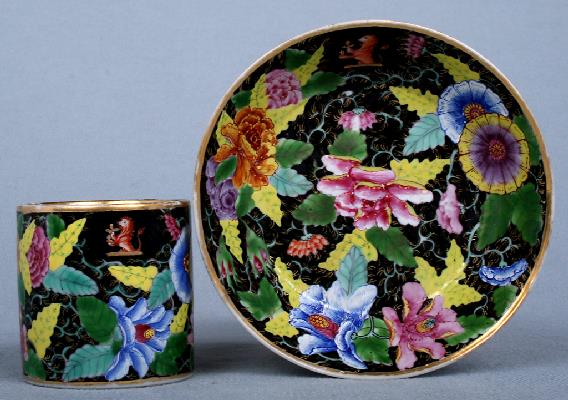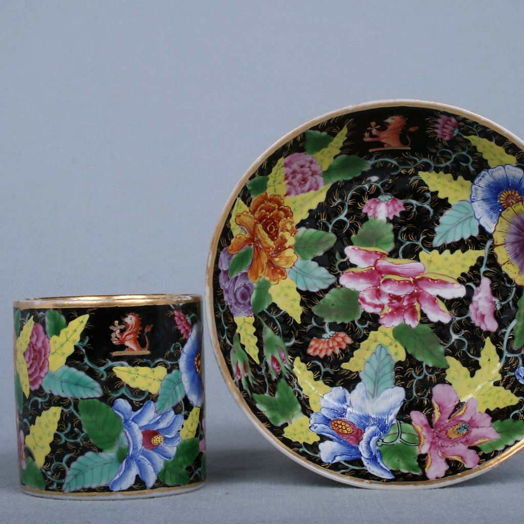 Coffee can & saucer, Jiaqing c.1810, with the crest of Erskine